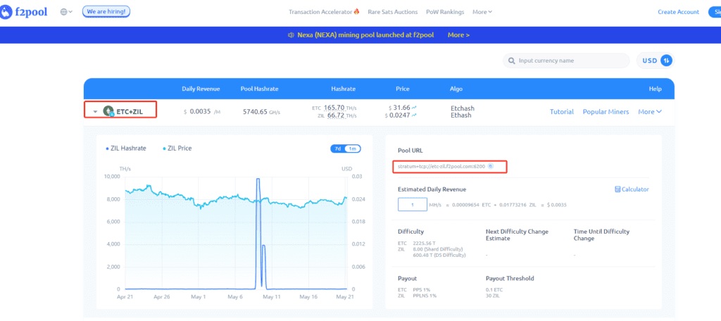 You can pick and choose any mining pool here. However, let’s take f2pool for demonstration purposes. Let’s take ETC+ZIL for example here.