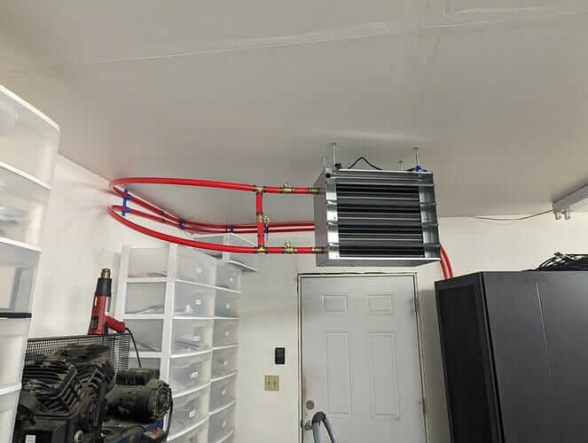 The general setup is to take the hot oil from the miners and run it through a heat exchanger. The other side of the heat exchanger has a water glycol mix. This is what is utilized to heat different things in the system (house, garage, etc…).