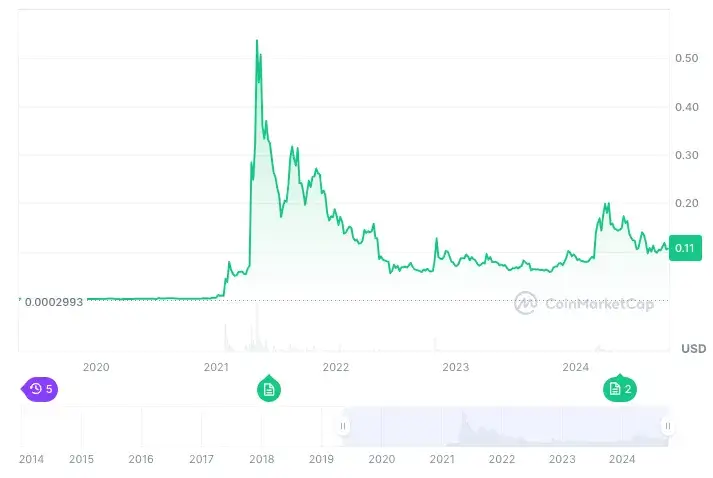 Dogecoin‘s price has been notably volatile, with its value influenced by market news, social media trends, and endorsements from public figures like Elon Musk. In 2021, Dogecoin reached its highest price of $0.73, fueled by widespread media attention and speculative trading. Since then, the price has fluctuated, often following broader cryptocurrency market trends and Litecoin stock price movements due to their merge mining connection.