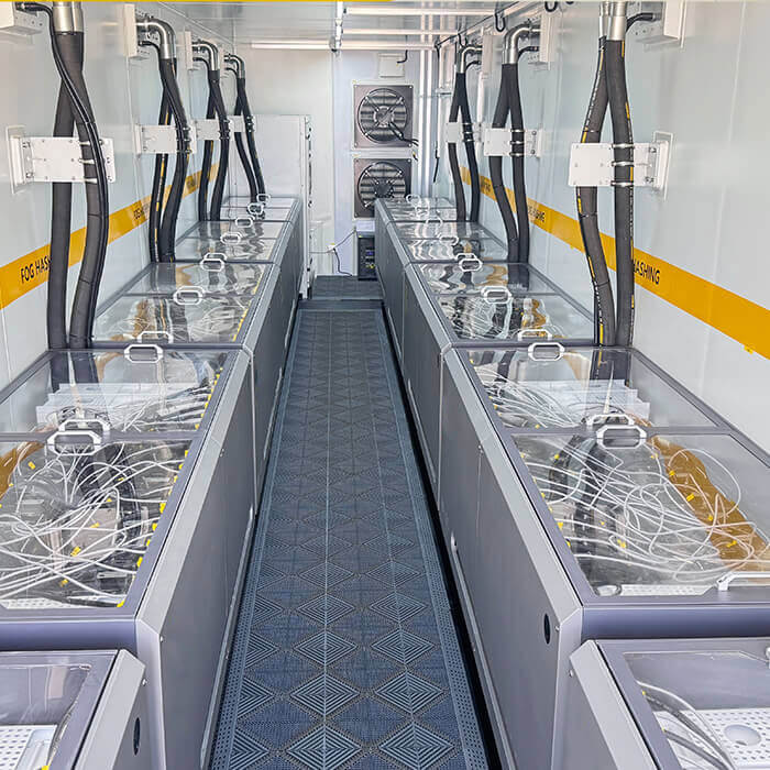 Tested cooling performance supports up to 200 miners, both air-cooled and immersion-ready.