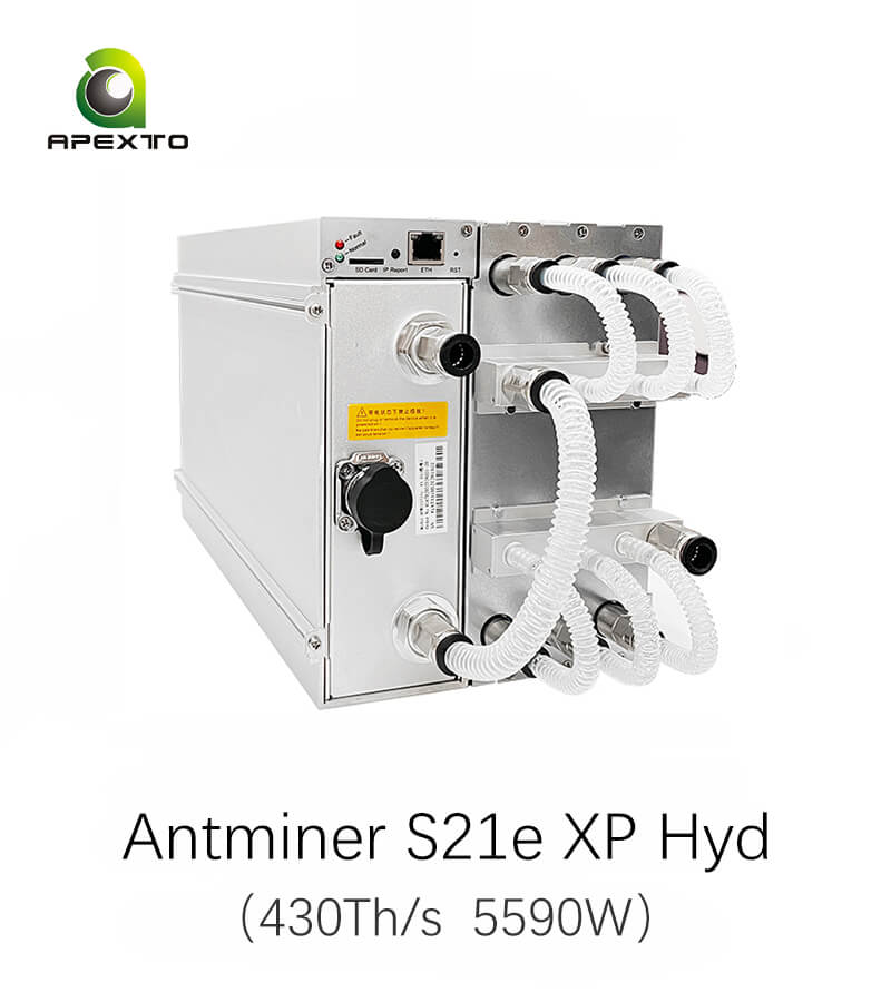The Antminer S21e XP Hyd is a high-performance mining device specifically designed for BTC cryptocurrency. With a powerful hashrate of 430 Tand a power consumption of 5590 watts, it delivers exceptional efficiency and profitability by minimizing electricity costs while maximizing mining output.