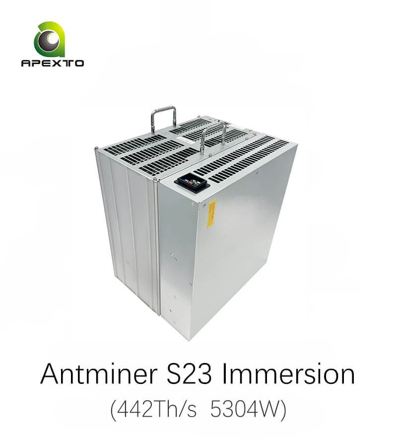 The Antminer S23 Immersion is a high-performance mining device specifically designed for BTC cryptocurrency. With a powerful hashrate of 442 Tand a power consumption of 5304 watts, it delivers exceptional efficiency and profitability by minimizing electricity costs while maximizing mining output.