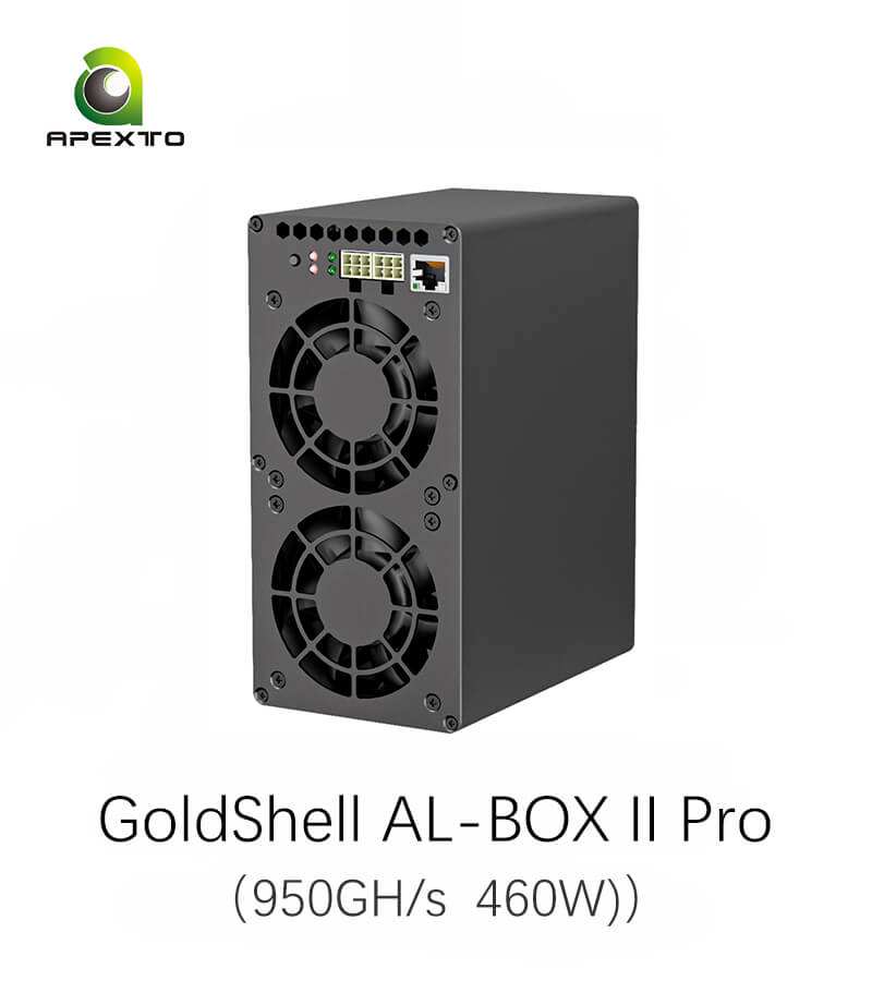 The Goldshell AL BOX II PRO is a high-performance mining device specifically designed for ALPH cryptocurrency. With a powerful hashrate of 950 Gand a power consumption of 460 watts, it delivers exceptional efficiency and profitability by minimizing electricity costs while maximizing mining output.