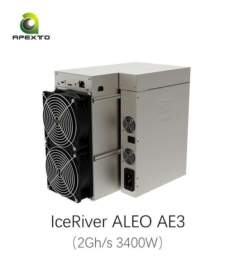 The IceRiver AE3 is a high-performance mining device specifically designed for ALEO cryptocurrency. With a powerful hashrate of 2 Gand a power consumption of 3400 watts, it delivers exceptional efficiency and profitability by minimizing electricity costs while maximizing mining output.