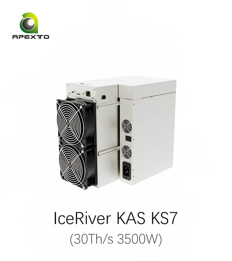 The Iceriver KAS KS7 is a high-performance mining device specifically designed for KAS cryptocurrency. With a powerful hashrate of 30 Tand a power consumption of 3500 watts, it delivers exceptional efficiency and profitability by minimizing electricity costs while maximizing mining output.