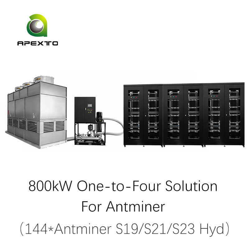 Currently, we have successfully delivered an 800kW solution using a one-to-four cabinet configuration, supporting up to 144 Antminer S19/S21/S23 Hydro miners with four racks per cabinet.