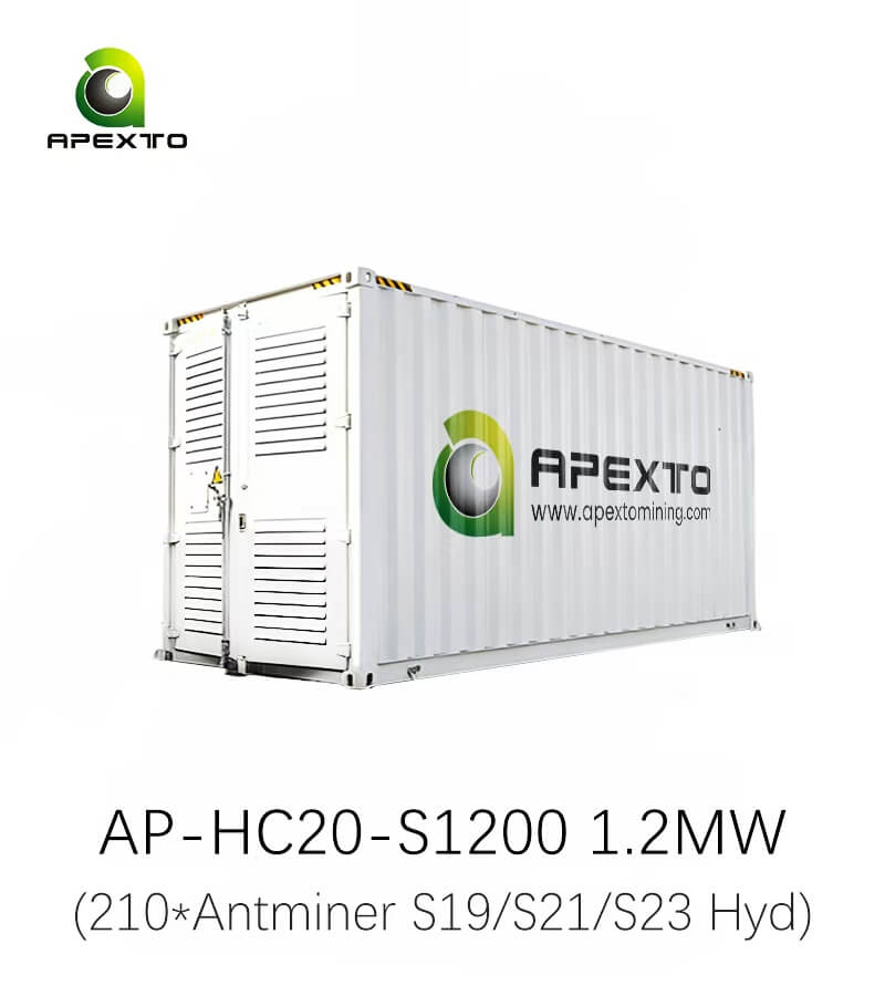 The Hydro Cooling Container HC20-S1200 is a 1.2MW modular solution built for efficient large-scale Bitcoin mining. It accommodates up to 210 Antminer Hydro miners, offering precise temperature control and stable operation even in harsh environments.