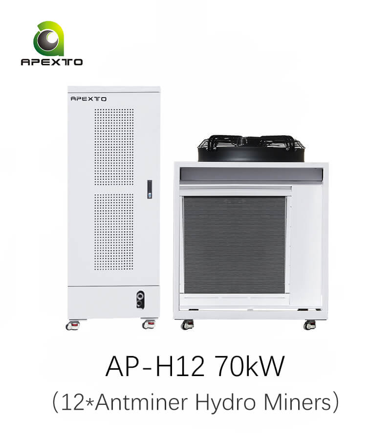 The Hydro Cooling Cabinet AP-H12 is a top-tier solution in our home-use series, supporting up to 12 Antminer hydro miners for larger home mining operations. It includes both a hydro cooling cabinet and a dry cooling tower, providing superior cooling performance to ensure stable and efficient operation in more demanding setups.