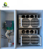 Our C2 uses an EC fan to adjust the speed according to the temperature of the oil entering the tank (dry cooler oil temperature).There are 2 modes to choose (the mode is changed by a button inside the waterproof junction box outside the dry cooler).Press the button down is HEATING mode (waste heat utilization mode) 41.3℃ to start the dry cooler, 49.7℃ to maximize the dry cooler speed. Press the button up is NORMAL mode (normal operation mode), 20.5℃ to start the dry cooler, 28.9℃ to maximize the dry cooler speed.