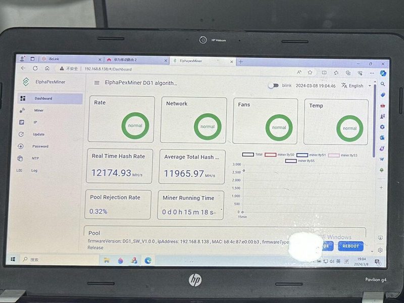 Elphapex DG1 is a new Srypt Asic miner from Elphapex. It has a high hashrate of 11G power consumption of 3420W. The efficiency of Elphapex DG1 is only 0.31 J/MH, which is better than Bitmain L7 9500M 0.36 J/MH.